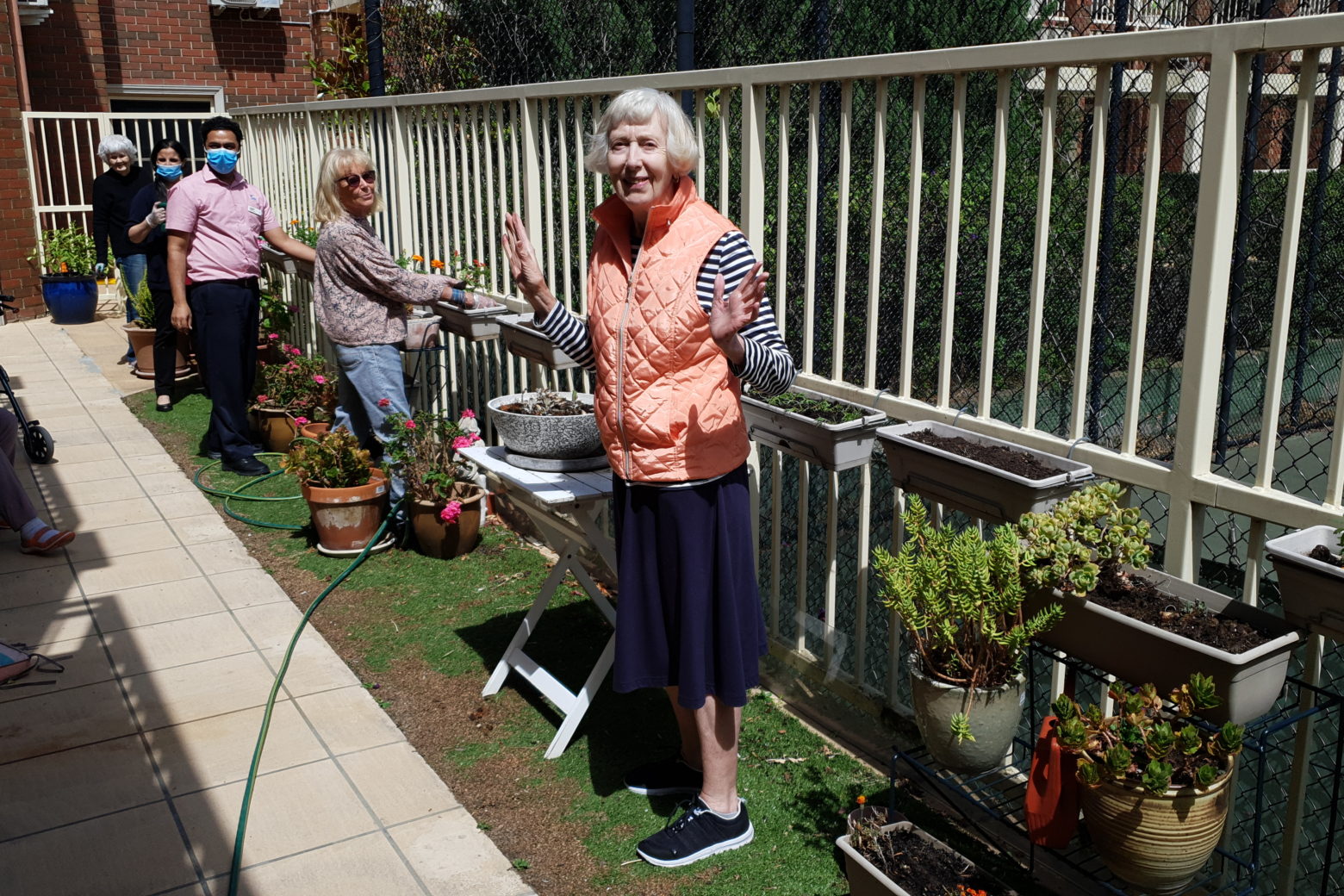 With the seasonal plants in Bay Wing needing a change, the Lifestyle Team decided to take on the project, with Dee and Meredith volunteering to help across every stage; pulling out the weeds, removing dead plants from pots and clearing up the garden. On International Flower Day, Gaurav, Lifestyle Coordinator at Regis Brighton, asked them both to join him on his trip to Bunnings to help select the fresh flowers and plants for their Home. Later that afternoon, they planted the vibrant florals in Bay Wing.