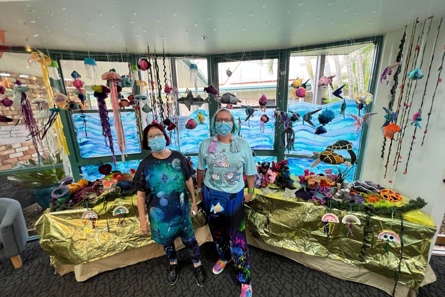 With the collective efforts of our residents and employees, the project has grown to encompass various upcycled materials, including wool, yarn, plastic bottles, lids, plastic bags, packaging, and coffee pods. This unique display serves as a powerful reminder of the detrimental effects of plastic waste on our oceans and the need to reduce our carbon footprint.