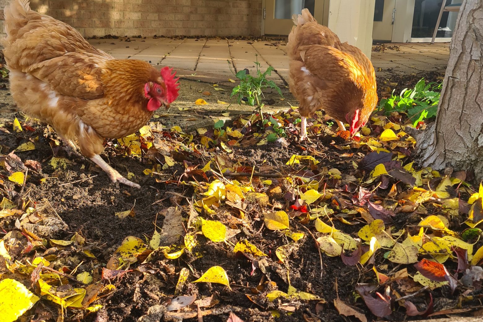 Why did the chicken cross the road? To eat the bugs in the Regis Bunbury gardens! Regis Bunbury receives regular visits from a Day Care centre next door where free-range chickens make their way over to scratch through our many gardens in search of tasty treats.