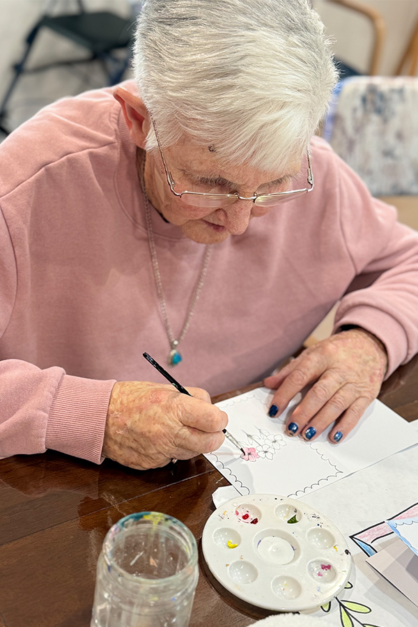 Each day, they sit together at their dining table, where they plan which activities to join. Lately, their favourite spot has been the newly renovated art room. They’ve spent hours there painting, chatting and creating handmade cards.