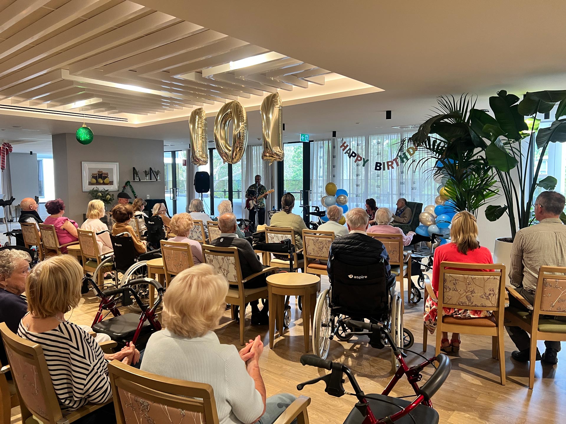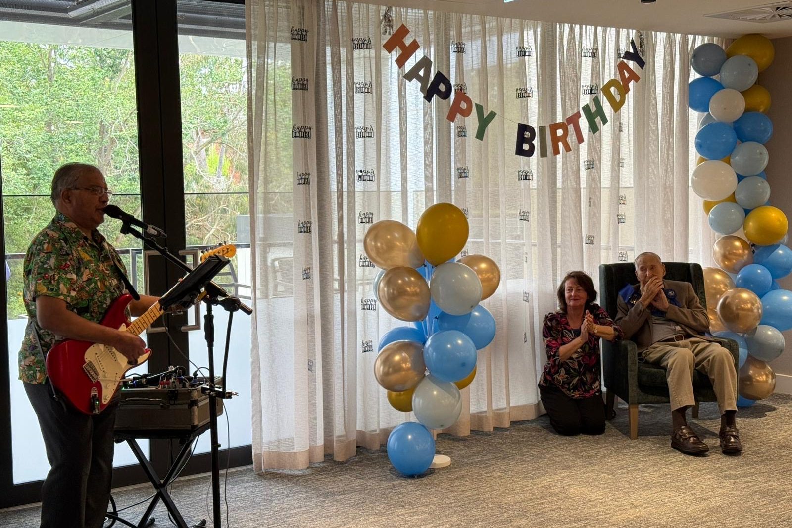 Live music performed by visiting musician Alex helped create the happy atmosphere and was the perfect backdrop for an afternoon of reflection and celebration. Everyone enjoyed delicious food made by the Home’s chefs, as they gathered to share in John’s milestone.