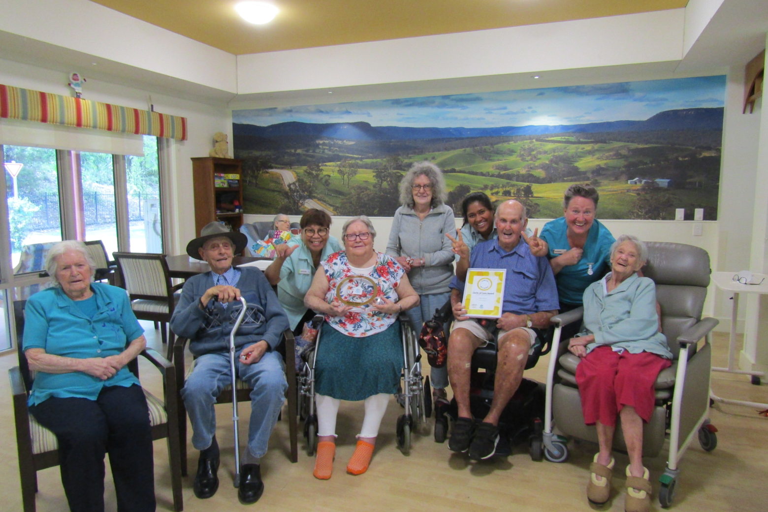 It’s the culture of kindness at Regis Gatton that has made residents like Reg Crust (pictured holding the certificate) feel completely at home at the residence, while his wife, Heather remains in the family home for now.