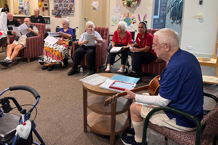 Led by Harry, a Memory Support Unit (MSU) resident with a passion for guitar, the group encourages self-expression through music. Team Members at Regis Greenbank have seen a transformation in Harry since he began leading the group.