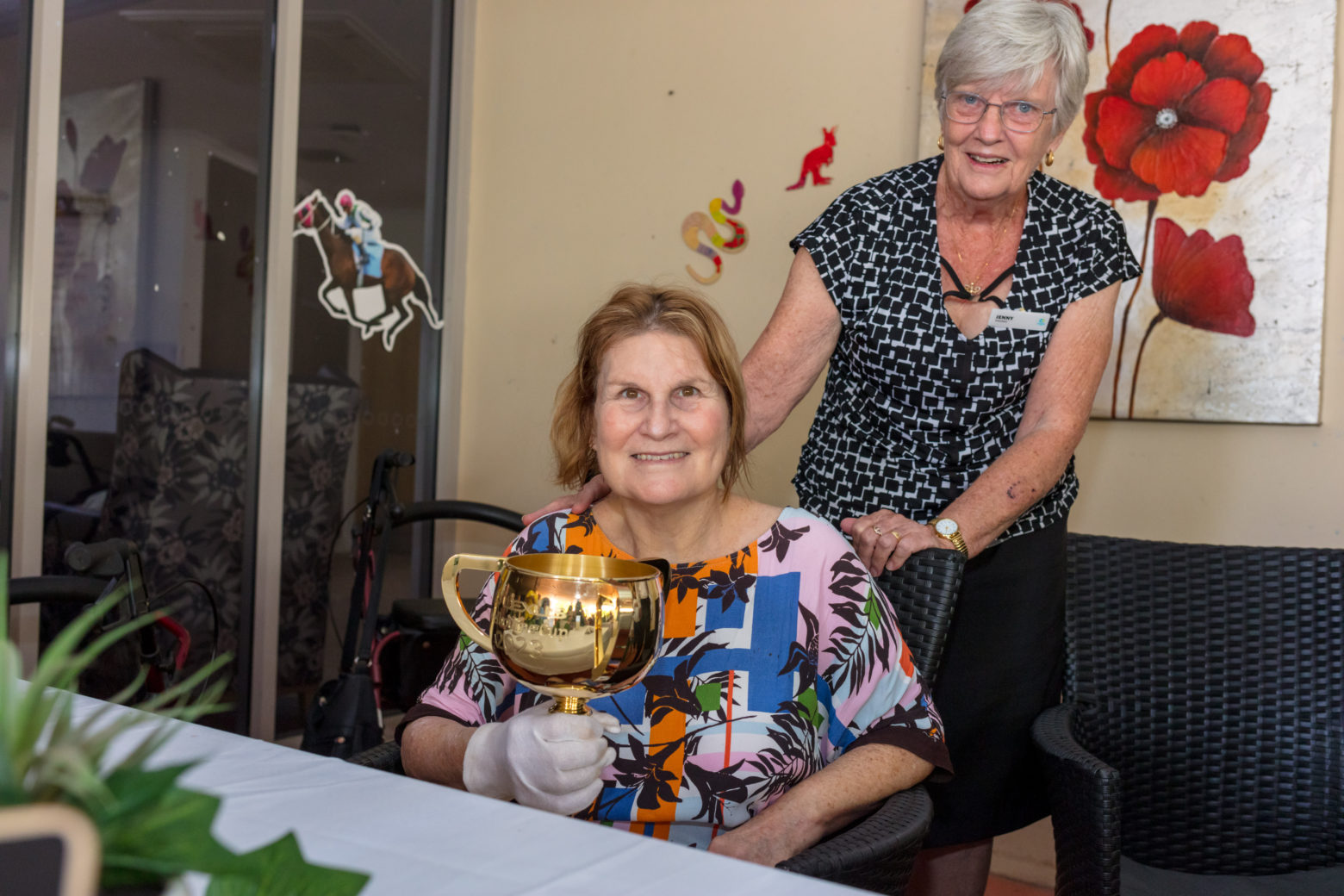The history of the Melbourne Cup, one of Australia’s most iconic sporting trophies and events, was shared with residents during a morning tea session. The Cup itself, along with its keeper, Joe McGrath, made a grand appearance, captivating the audience and sparking nostalgia among the residents. The atmosphere was lively with residents and guests dressing up for the occasion.