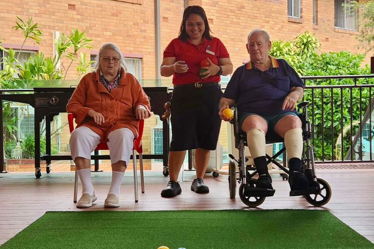 Peeping outside the window to the Alawarra Lodge courtyard would often include a view of Ted enjoying a stroll with his loved ones or perhaps even relishing a basketball game. Meredith says that “nobody ever used the basketball hoop until Dad arrived. As soon as I asked, the Lifestyle team were quick to set it up and get everything organised. He still plays and never misses. He knows what he’s doing.” Treating the team at Alawarra Lodge to a display of his exemplary basketball skills, Ted showed off his wonderful talents and was forever a gentleman when he said to Meredith, “ladies first”, to encourage his daughter to take the first shot.